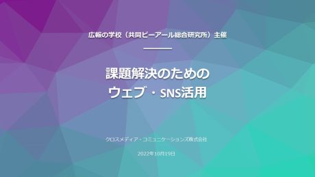 共同ピーアール主催の「課題解決のためのウェブ・SNS 活用」...